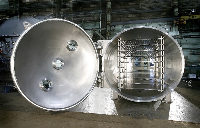 Consiste em uma câmara de vácuo quadrada ou redonda com prateleiras internas fixas personalizadas; O material molhado a ser seco é carregado em bandejas e colocado manualmente nas prateleiras. A parte superior de cada prateleira é plana com uma camisa na parte inferior para que os meios de aquecimento possam circular, para atingir a temperatura de funcionamento desejada.